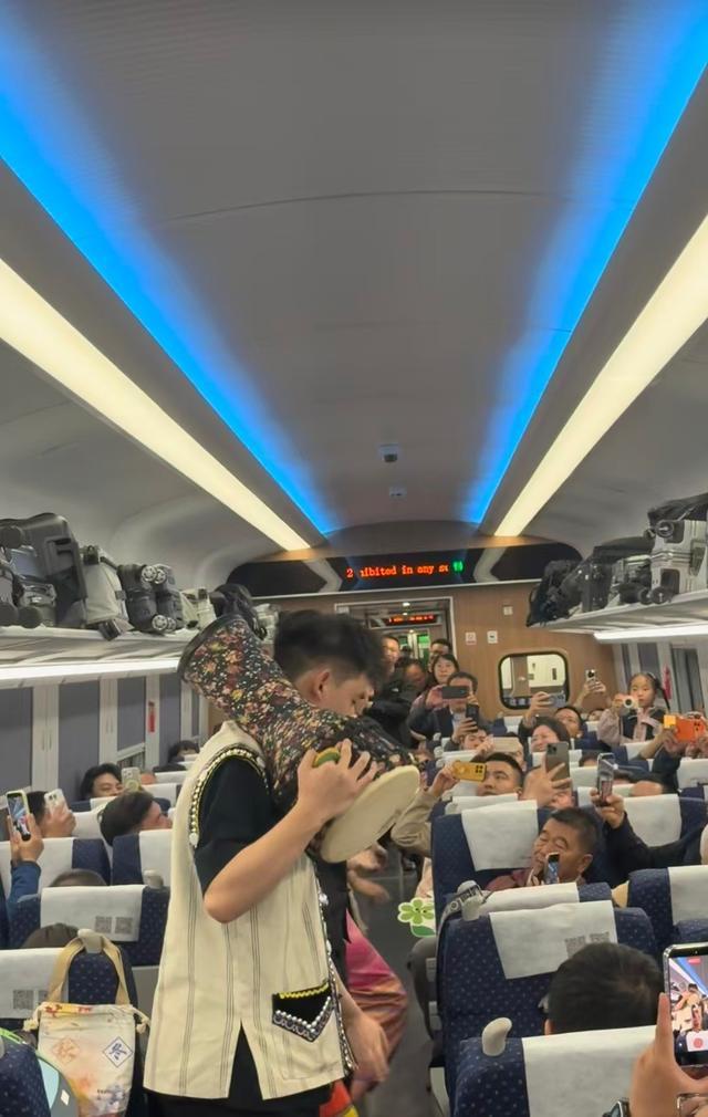 有东说念主拍着座椅打节律,有东说念主随着旋律哼和,银饰碰撞的脆响裹着笑声在车厢里漾开。那一刻,窗外的云和山在往后跑,车厢里的歌声和笑声在往前涌。