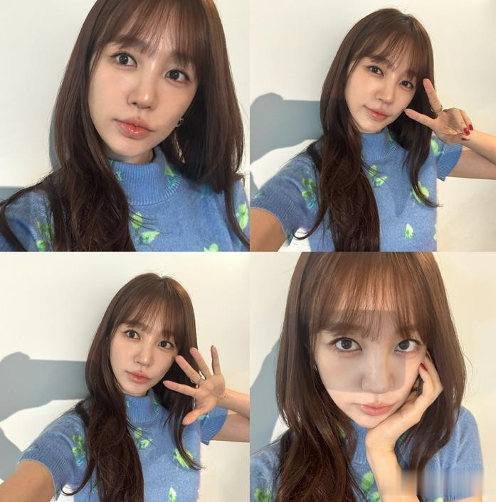 在像片中可以看到尹恩惠穿戴一件高领短袖的蓝色打底印花毛衣,看起来照实很温柔。她化着崭新高雅的妆容,搭配棕色的刘海长发,看起来相称有日系作风的甜好意思,又多了几分和睦的气质。